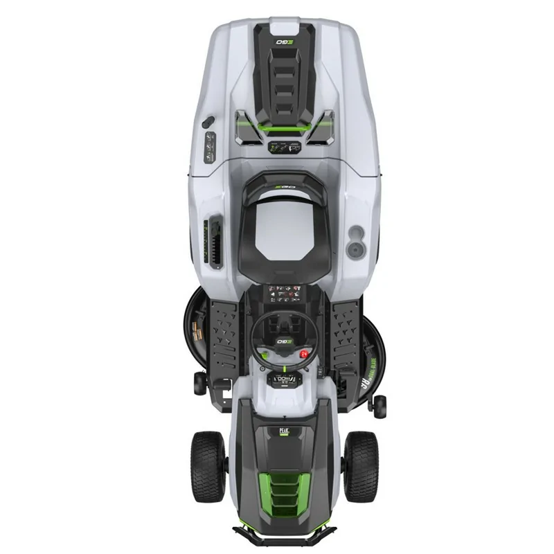 O EGO Power+ TR3800E-B é um trator corta-relva inovador, alimentado por baterias ARC Lithium™ de 56V, garante um desempenho potente sem emissões, ruídos excessivos ou manutenção típica dos motores a gasolina. Este modelo dispõe da tecnologia Peak Power™, que combina até seis baterias para entregar potência equivalente a 22 HP. Equipado com um ecrã LCD digital, oferece configurações personalizáveis, como três velocidades de condução, três ajustes de lâminas e Cruise Control. O seu design robusto inclui uma estrutura em aço estampado de 96 cm, perfeito para jardins extensos. Os faróis LED integrados iluminam o caminho durante o trabalho em condições de pouca luz, enquanto o para-choques dianteiro protege o trator de possíveis impactos. Além disso, o seu assento confortável com suspensão de molas ajustável garante uma experiência de condução suave e confortável em qualquer altura.
